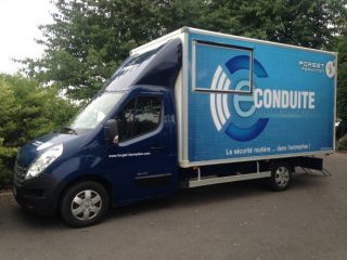 D’autre part, il existe le simulateur de conduite mobile, qui est quant à lui installé dans un véhicule de type camion de livraison léger. Reprenant les éléments d’un simulateur de conduite fixe, le simulateur mobile permet d’apporter cet outil pédagogique innovant dans les centres ne pouvant accueillir un simulateur fixe. Ainsi, davantage d’apprenants peuvent bénéficier de cette innovation pédagogique.